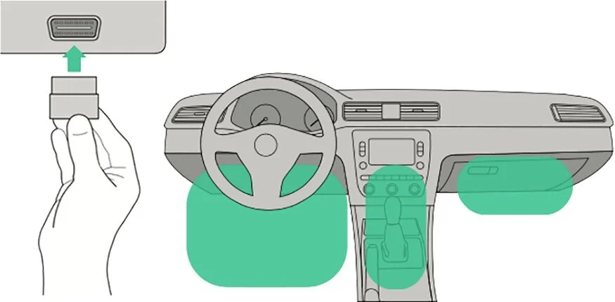 Den kopplas enkelt in i OBD2-porten. Den kan sitta på olika platser beroende på vilken bil du har, men vanligast är att den sitter under ratten, i handskfacket eller framför växelspaken.